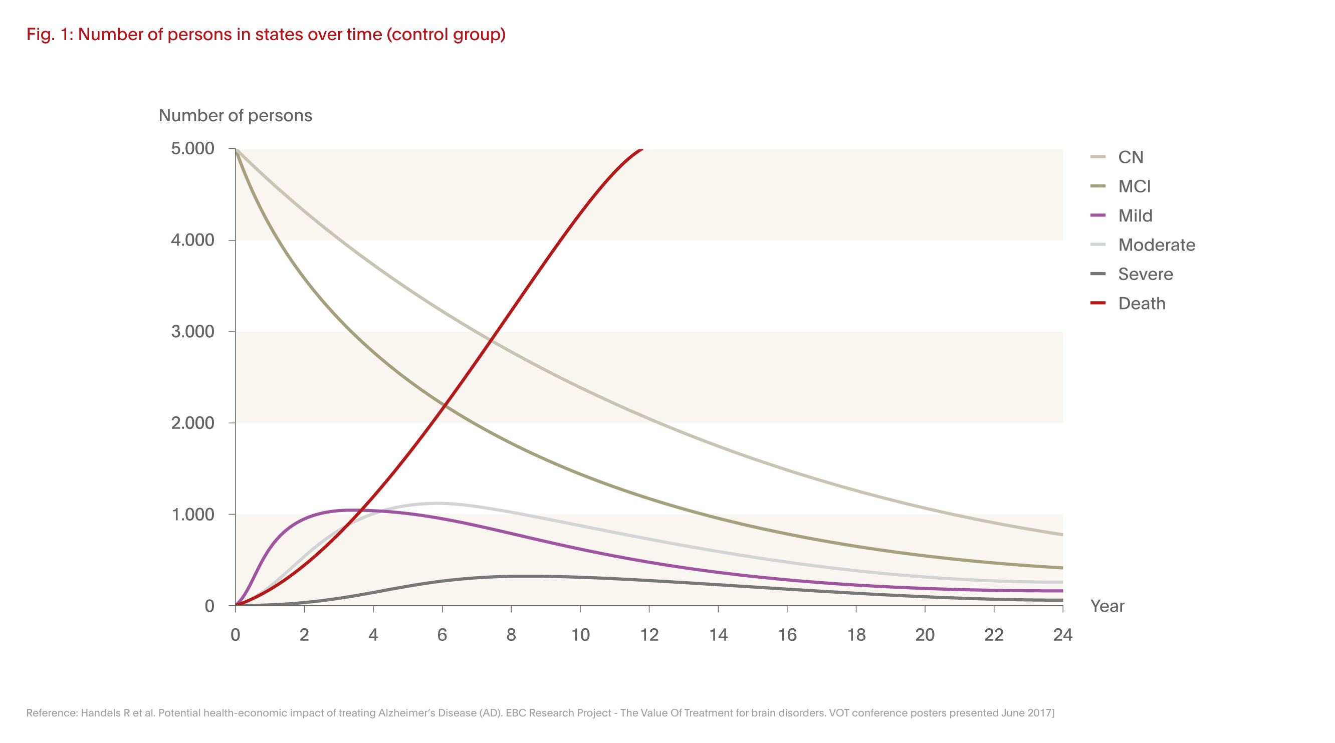 The greatest costs in managing AD arise from i) the need for the long-term institutional care of people who cannot live in the community, and ii) the burden on informal caregivers looking after those who can. Both these elements were included by Handels and colleagues in a model that assessed the impact of a hypothetical disease-modifying treatment in a virtual cohort of 10,000 people with normal cognition or MCI who tested positive for amyloid beta.3 It was assumed that the hypothetical agent would reduce progression to dementia by 50%.