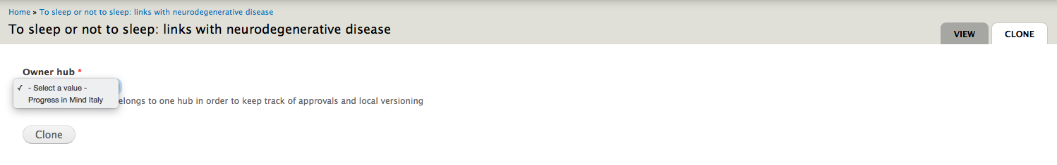 You will be asked where the content should be cloned to. Select the hub you are hub editor of.